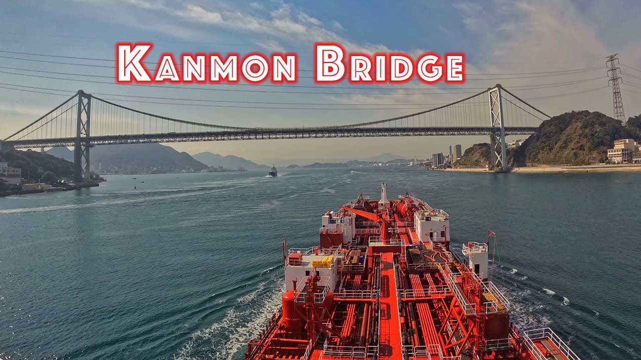 The Kanmon Bridge (関門橋, Kanmonkyō) (Asian Highway Network AH1) is a suspension bridge crossing the Kanmon Straits, a stretch of water separating two of Japan’s four main islands. On the Honshū side of the bridge is Shimonoseki (下関, which contributed Kan to the name of the strait) and on the Kyūshū side is Kitakyushu, whose former city and present ward, Moji (門司), gave the strait its mon.