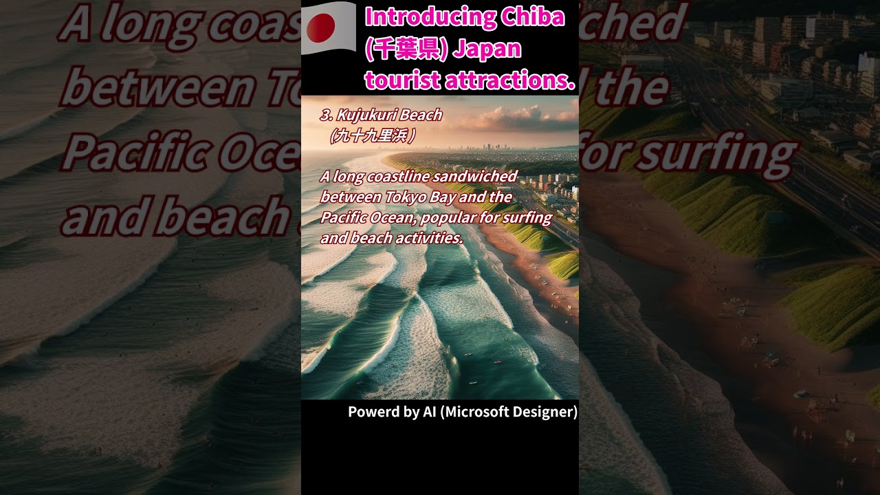 3. Kujukuri Beach: A long coastline sandwiched between Tokyo Bay and the Pacific Ocean, popular for surfing and beach activities.