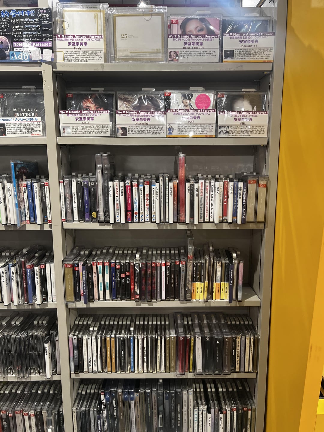 Namie Amuro is alive and well in the Tower Records I visited in Shinjuku and Shibuya. She had a whole display plus 4 rows of all of her albums, singles and concert DVDs/Blurays.