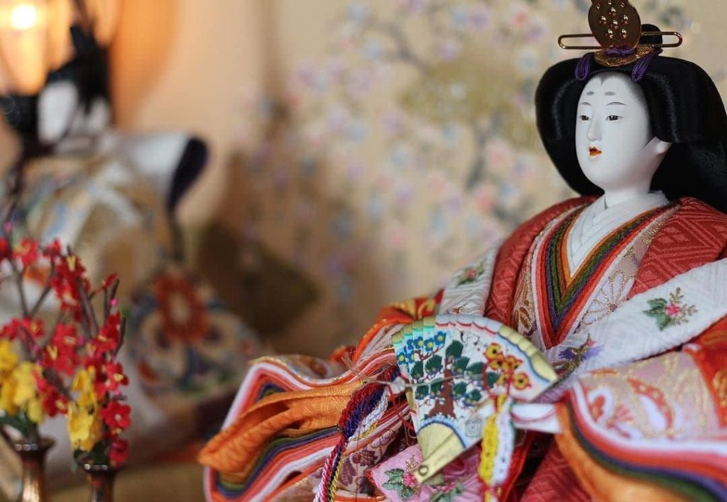 Hina-Matsuri (Doll Festival) is celebrated on March 3rd in Japan. Wishing their daughters’ health and happiness, parents display a set of Hina-dolls and peach blossoms that fend off illness and misfortune. Pictured is an Empress doll in twelve-layered robe. The supreme attire of noble ladies in Heian period (794-1185) has been skillfully recreated.