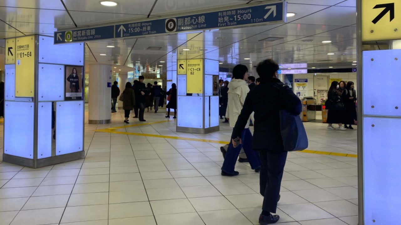 Shinjuku-sanchome Station Morning Walk | Tokyo Metro Marunouchi Line to Fukutoshin Line | Japan 4K