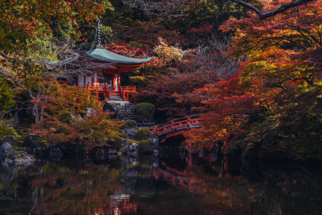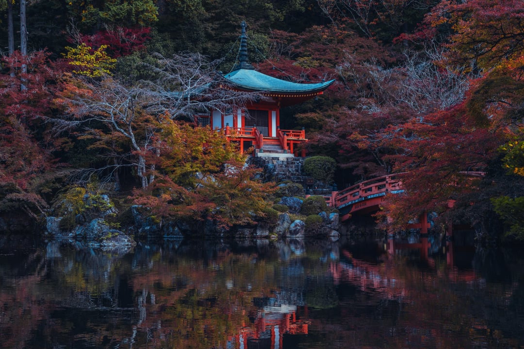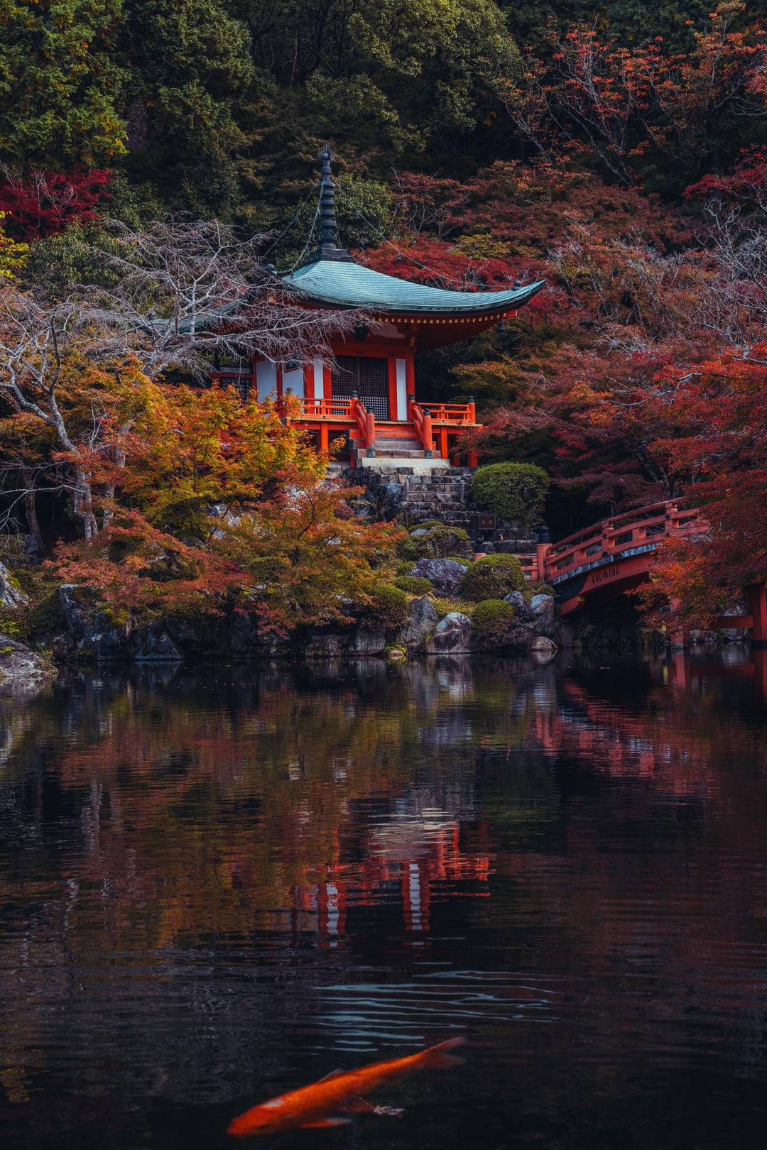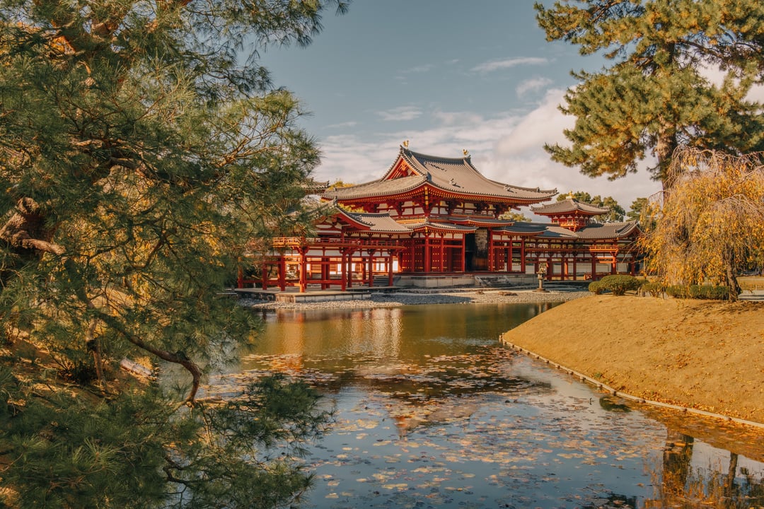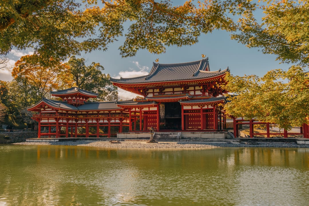 After Fushimi Inari, we made our way to Daigo-ji, where autumn leaves framed the temple’s serene pond. As I composed a shot, a single koi fish glided into the frame, its ripple subtly breaking the stillness. Later, at Byodoin Temple, the iconic Phoenix Hall stood elegantly over the water, its reflection mirroring centuries of history in perfect silence.