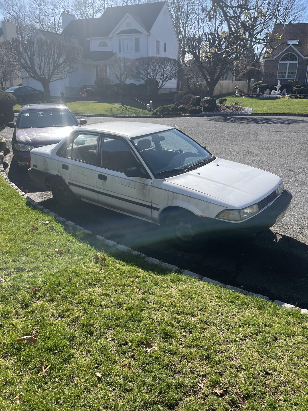 Unfortunately she’s in bad shape, the previous owner probably never washed the New Jersey road salt off her ever, so the brake lines finally gave out last year and I had to put her up in the driveway. She’s got a leaky head gasket, but still gets up to 70mph no problem. Her radiator and exhaust have more holes than most, but it hasn’t slowed her down much.