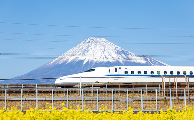 Passengers can efficiently enjoy Japan’s diverse scenery from Shinkansen windows while traveling between cities at speeds of over 200 km/h. Mt. Fuji (3,776 meters above sea level), a World Heritage Site, can be seen on a clear day from the windows of the Tokaido Shinkansen that connects Tokyo and Osaka. This line also provides access to the five major Japanese cities of Tokyo, Yokohama (Kanagawa Prefecture), Nagoya (Aichi Prefecture), Kyoto City and Osaka City in a short time. For example, the Nozomi Shinkansen covers the trip from Tokyo to Osaka (Tokyo Station to Shin-Osaka Station) in about 2 hours and 30 minutes.