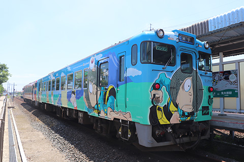 The Kitaro Train runs on the JR Sakai Line between Yonago and Sakaiminato Stations in Tottori Prefecture.