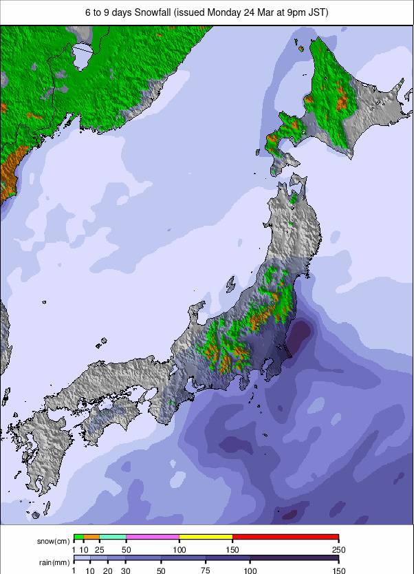 Japan snow forecast for the next 6-9 days.