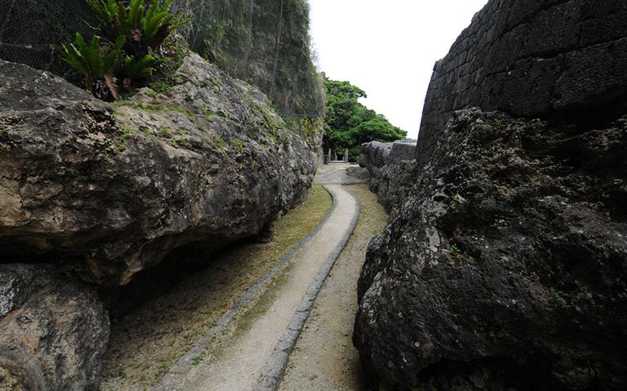 There are stairs lead to underneath the ruins where there is another historical site called, Urasoe Youdore, a 750 year old mausoleum of Ryukyu Kingdom.
