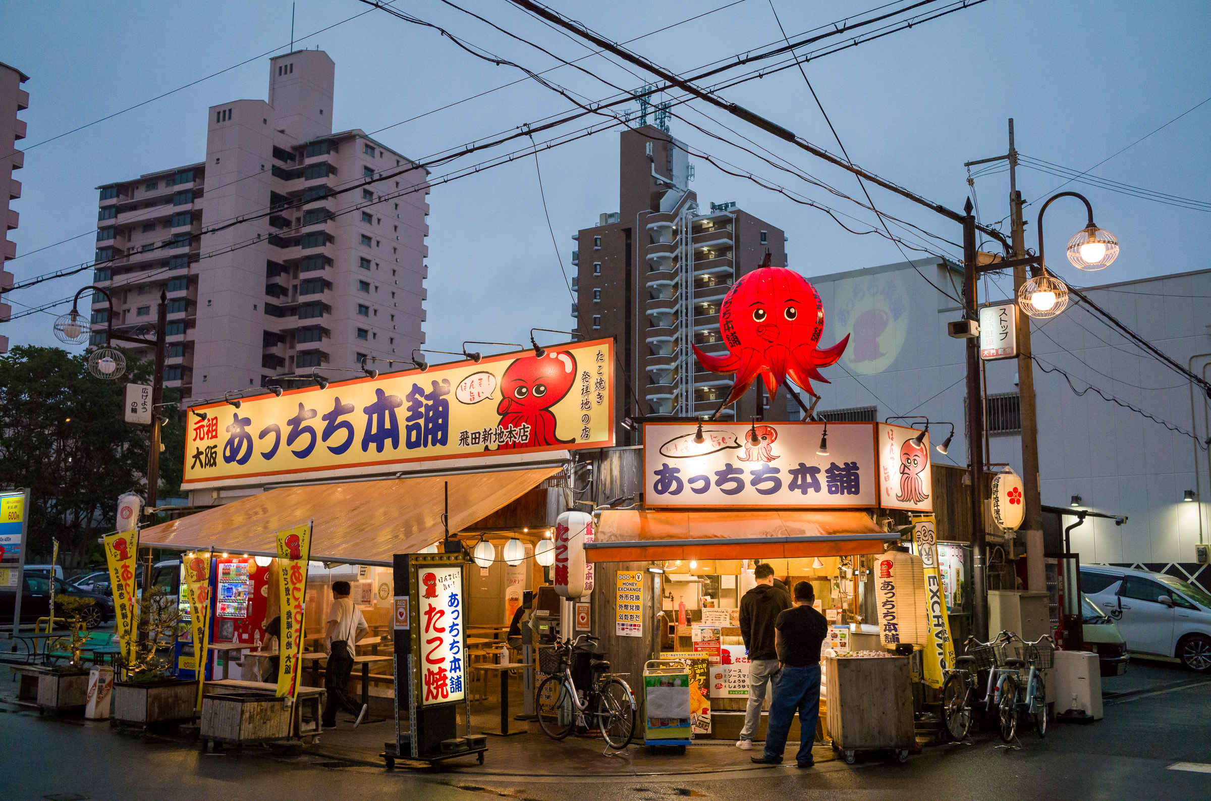 Editor’s Note: We asked Lee Chapman, a photographer who has been living in Japan since 1998, to give us a peek into the bright lights and warm locales of Osaka’s nighttime food scene. His photos have appeared in the Guardian, New Statesman, Spiegel Online, Japan Times and The Economist, plus numerous other print and online publications. He runs the photo blog Tokyo Times, which features his images exploring day-to-day life in Tokyo and occasionally other Japanese cities.