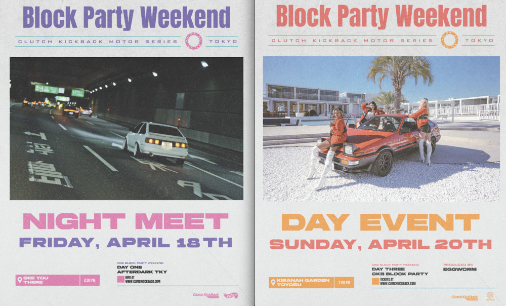 The Clutch Kickback Motor Series (CKB) returns to Tokyo for the highly anticipated CKB Block Party Weekend. This event celebrates the fusion of car culture, live music and nightlife at a new Ibiza-inspired venue in Toyosu. From a networking night meet to a full-scale block party featuring DJ performances and luxury car showcases, the weekend promises an eclectic mix of automotive excellence and vibrant entertainment.