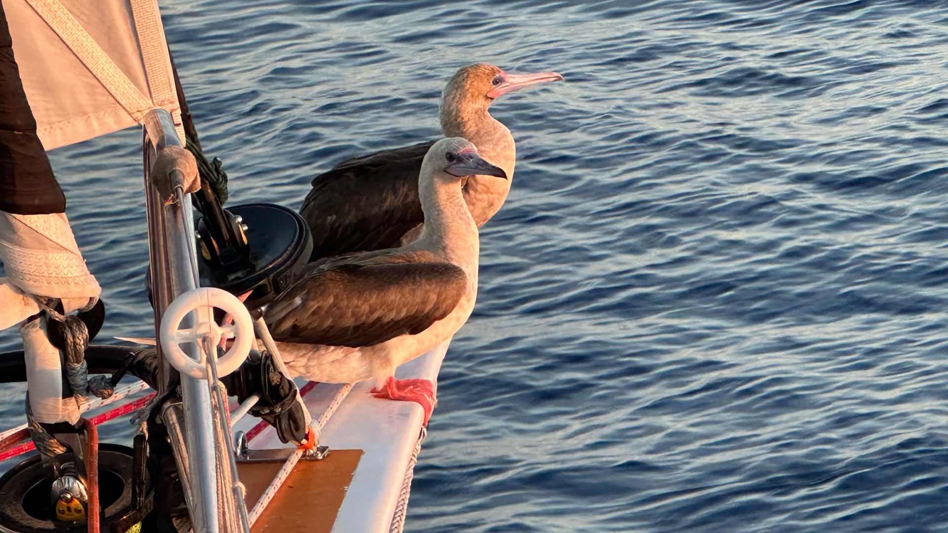 Zero holds a commanding lead of around 500 nautical miles over Escapade and Curious Roo, still struggling to find consistent winds in the transition zone of the horse latitudes.