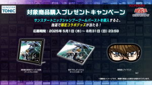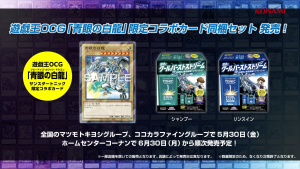 Sunstar Tonic Exclusive Collab Card featuring a new artwork of “Blue-Eyes White Dragon” with Shampoos, this product goes on sale May 30th, 2025 throughout Japan in Matsumoto Kyoshi Group and Kokokara Fine Group stores! Home Center Kornan gets it on June 30th, 2025.