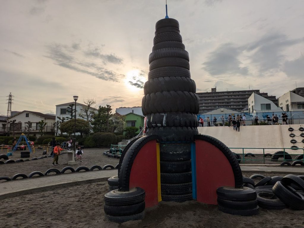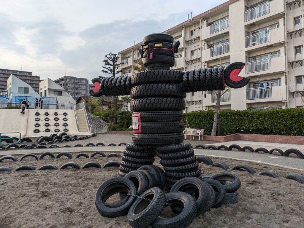 Nishi-Rokugo Park — better known as “Tire Park” — is a quirky playground in Tokyo’s Kamata area that transforms old rubber tires into a wonderland of play. Tucked in Ota Ward, this imaginative park is famous for its playground equipment made almost entirely from recycled tires.