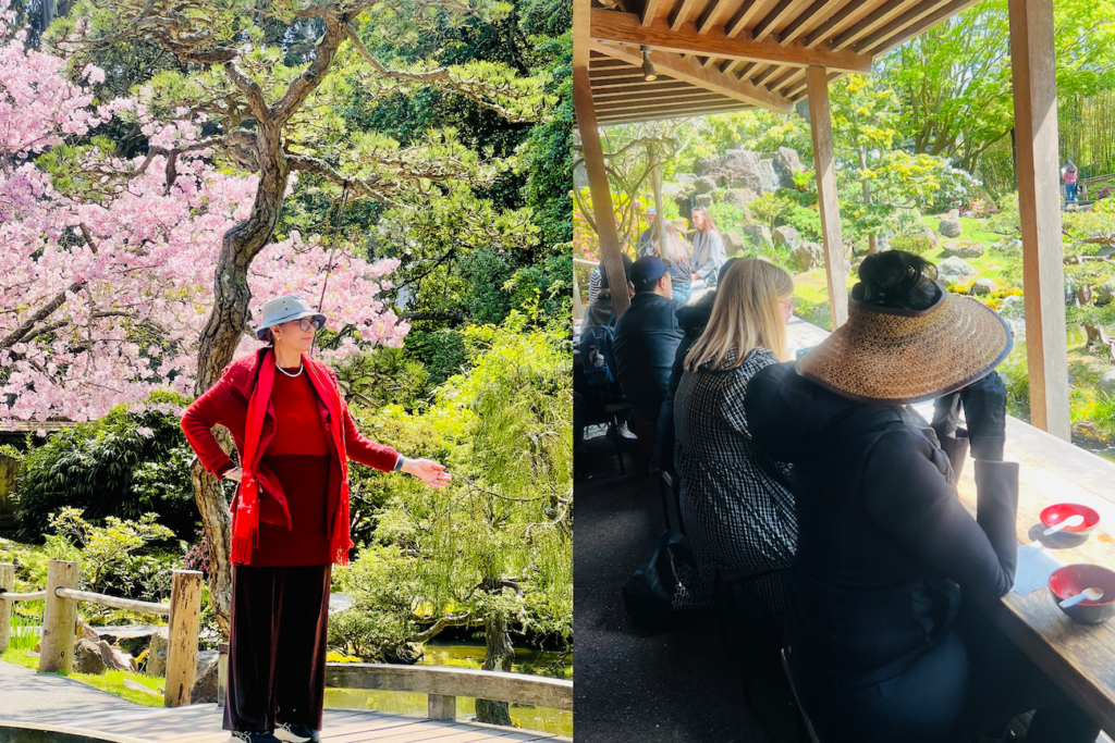 While sipping fragrant sencha tea in the Japanese tea garden in San Francisco recently at the gorgeous gardens of the Golden Gate Park, overlooking a koi pond, I was reminded of that day in Kyoto. The delicate pink sakura blossoms were in full bloom. As the delicate petals fluttered around us, resting on children, plump fish, playful turtles, and elderly couples as they basked in the peaceful spring air. The image of the Japanese people came to mind—so diffident, careful, and respectful, yet with a quiet strength.