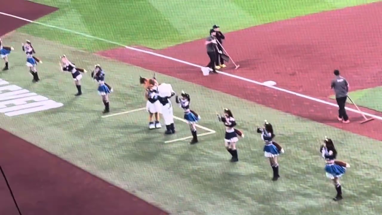 プロ野球パ・リーグの2025シーズン公式戦、北海道日本ハムファイターズ vs 埼玉西武ライオンズの5回戦、4回裏終了時の恒例イベントであるきつねダンスです。