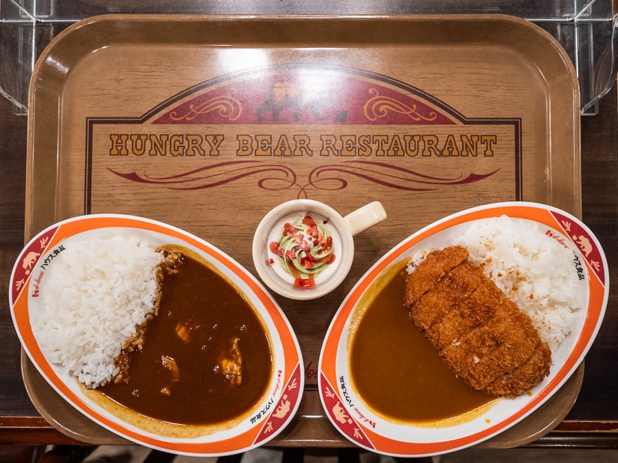 Food is less expensive at Tokyo Disney Resort. If you’re just purchasing an entree, you can often do so for $6 to $8. Hungry Bear Restaurant is my favorite counter service spot for curry in either park, and it charges ¥900 for the curry on the left and ¥1,100 for the port cutlet curry on the right. That’s a total of $13.20 for both bowls.