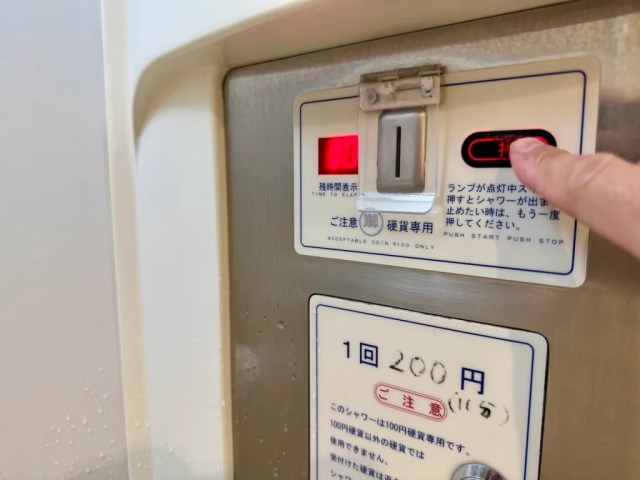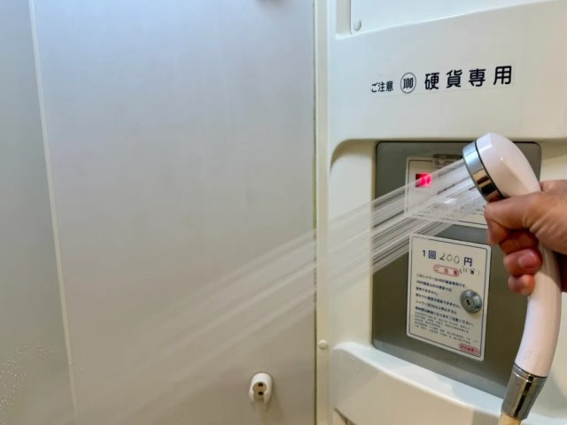 Yep. If you find yourself in need of a quick shower, this Seicomart is happy to oblige. Actually, your shower doesn’t even have to be all that terribly quick, since you get 10 minutes for 200 yen (US$1.40). Just feed your coins into the slot, turn the handle, and you’re all set!