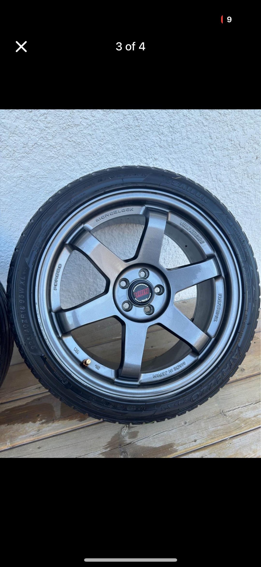 I don’t understand why it has a 5×100 and 5×114 lug pattern stamp behind it. typically real copies have rays eng and made in japan back there too. something about the spokes seem really off to. I’d steer clear of them if you’re wanting authentic TE’s