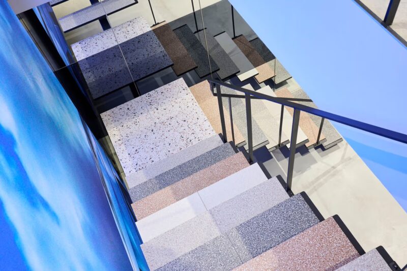 The interior is defined by moody dark wooden walls that contrast beautifully against light, marbled concrete floors. It’s a clear nod to brutalist architecture, softened through minimalist Japanese craftsmanship. The result is a space that feels both exclusive and inviting, designed not just to sell clothes but to create a visual and sensory dialogue with its visitors.