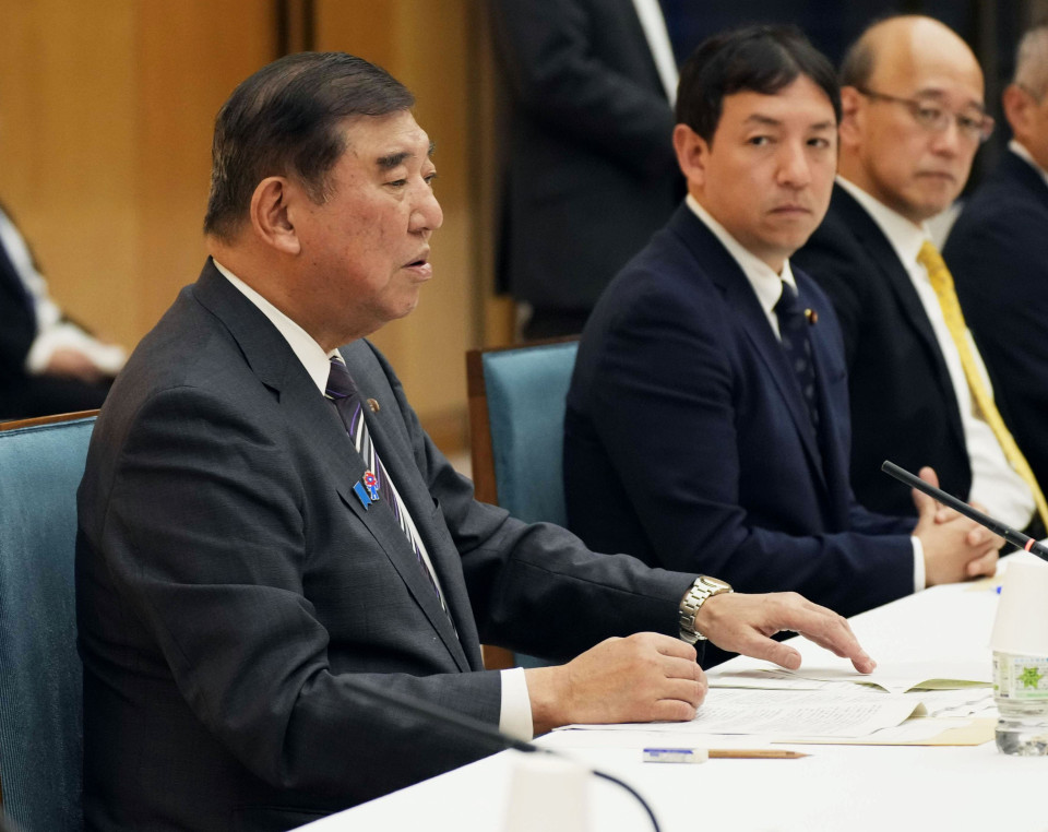 Prime Minister Shigeru Ishiba speaks during a meeting of a government panel involving experts at his office in Tokyo on June 3, 2025. (Kyodo)