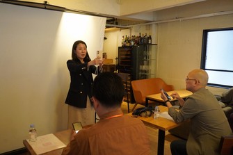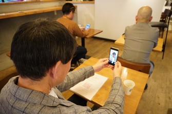 Kikuno advised that using a phone’s out-facing camera can result in clearer photos. Some participants then went to taking new profile shots at an outdoor seating terrace, thinking carefully about the angle, distance and other factors.