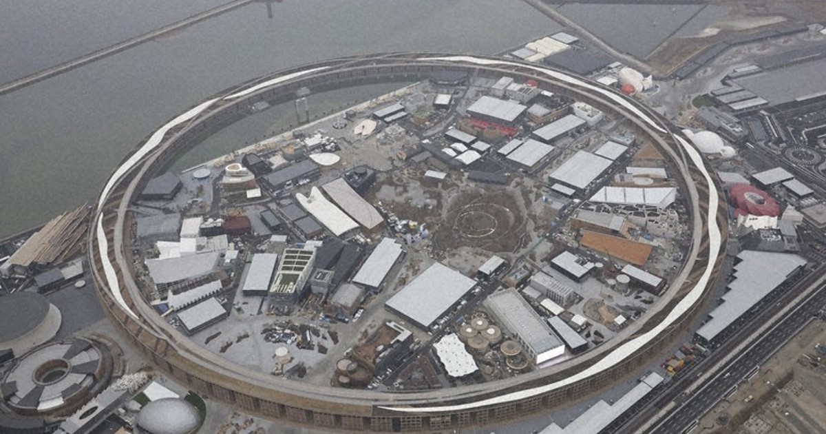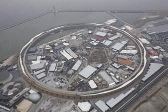 The Expo 2025 Osaka, Kansai, Japan venue with the giant wooden roof called the “Grand Ring” is seen on Yumeshima island in Osaka’s Konohana Ward in this photo taken from a Mainichi Shimbun helicopter on Feb. 28, 2025. (Mainichi)