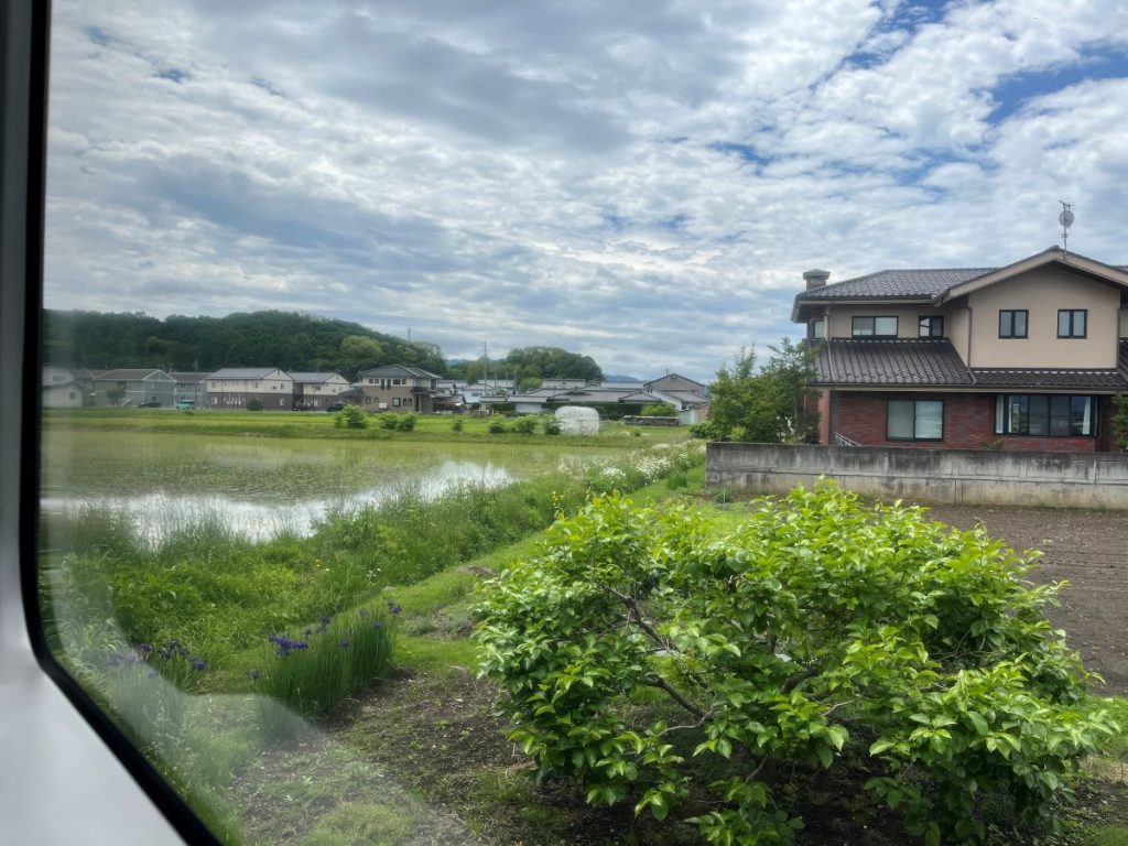 Departing Sakudaira Station on the Koumi Line, Nagano Prefecture, apartment buildings quickly become single-standing homes. In turn, those transform into freshly planted rice paddies, then mountains. I place a can of cold, black coffee on the windowsill next to my hiking pack and poles.