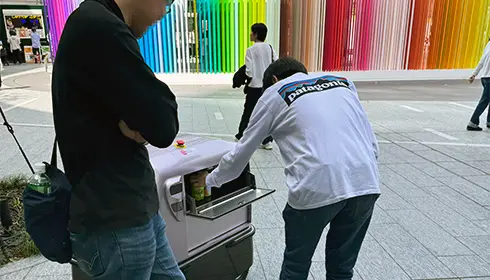 Takanawa Gateway City is home to Takanawa Gateway Link Scholars’ Hub, or LiSH, which aims to realize a future where everyone lives happily and people coexist with robots. Along with the platform-like vehicles, there are robots throughout the complex. People with the Takanawa Gateway City app can buy drinks online that are delivered by robots to designated locations in Gateway Park. Security and cleaning robots are also used in the buildings’ office spaces. These service robots give Takanawa Gateway City a futuristic feel and provide an image of a future where robots assist people with their daily lives.
