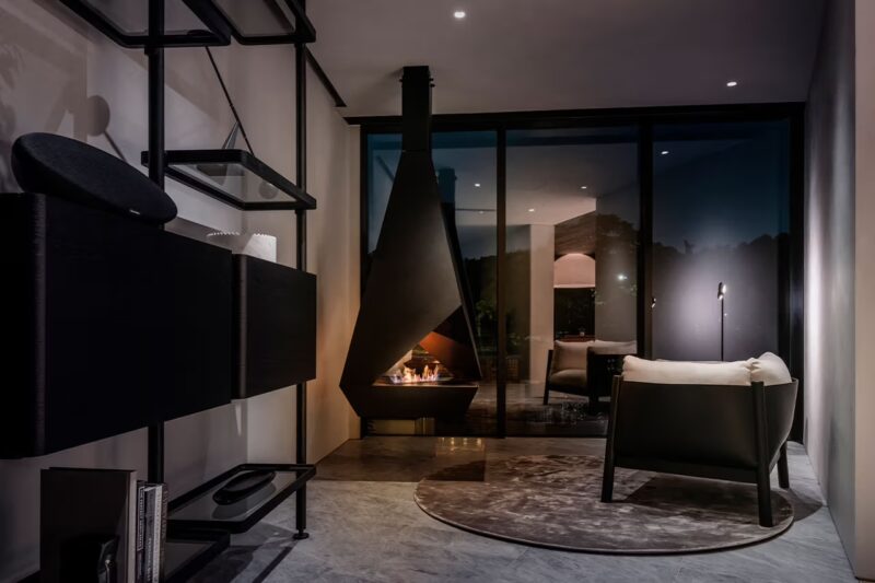 Inside, the residence features carefully chosen materials that speak to both Japanese tradition and modern global design. The spa area is clad in Hinoki wood, celebrated for its soothing aroma and resilience. The kitchen is finished in black lava stone, bringing a volcanic edge to contemporary culinary space. And throughout the home, Molteni&C furnishings lend a refined European elegance.