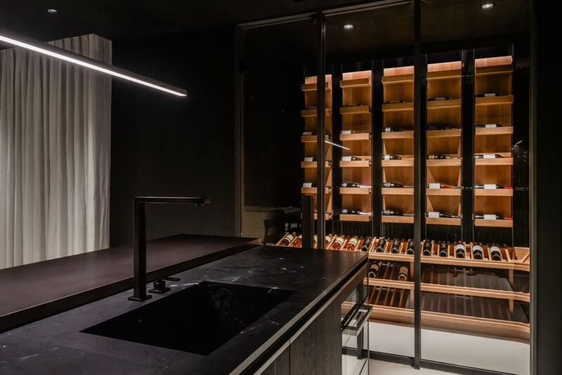 Their design approach places equal weight on beauty and utility. Every room, every material, and every line contributes to a sense of performance-driven luxury. From the polished automotive gallery that spotlights two Aston Martins like museum exhibits to the darker-toned basement transitioning toward a light-filled rooftop, the structure is more than a home—it’s a curated journey through space and emotion.