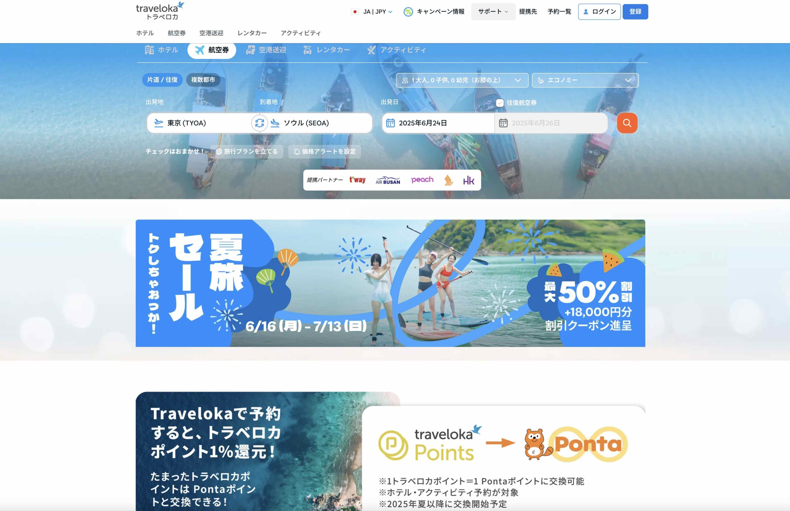 Traveloka, a major OTA in Asia, will start enabling a user to exchange Traveloka points to ‘Ponta points,’ a Japan’s major point program after the summer of 2025. 1 Traveloca point equals 1 Ponta point and can be exchanged in increments of 100 points (200 points or more).