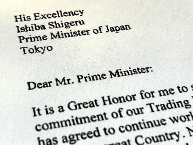 Prime Minister Shigeru Ishiba took Trump’s letter threatening a new unilateral tariff in stride on July 8.