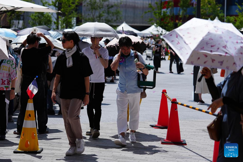 Tourists visit the Expo 2025 Osaka in Osaka, Japan, on July 10, 2025. Heatstroke alerts were issued in many places in Japan as the country is hit by a searing heatwave. (Xinhua/Jia Haocheng)
