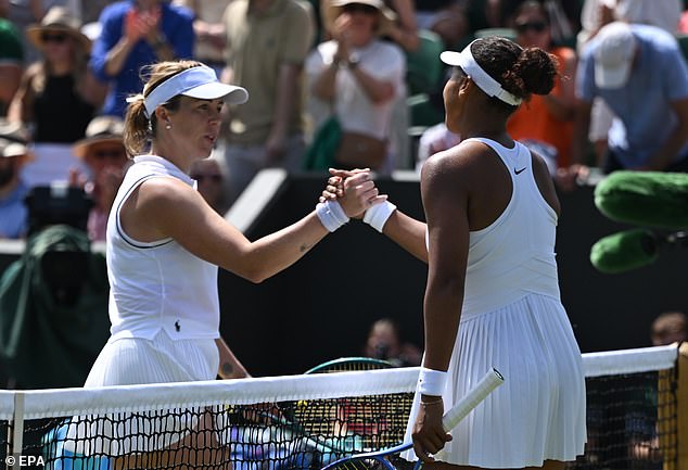 ‘I mean, I think for me, it’s not like I can really even be mad at myself. I was thinking about the break points that I had. She hit some really good serves. Then she hit a backhand. I can’t really do that much about it.