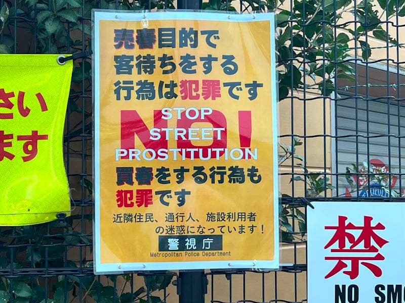 Signs around Okubo Park remind visitors that prostitution is a crime in Japan. They don’t seem to be working. (Picture: Unseen Japan)