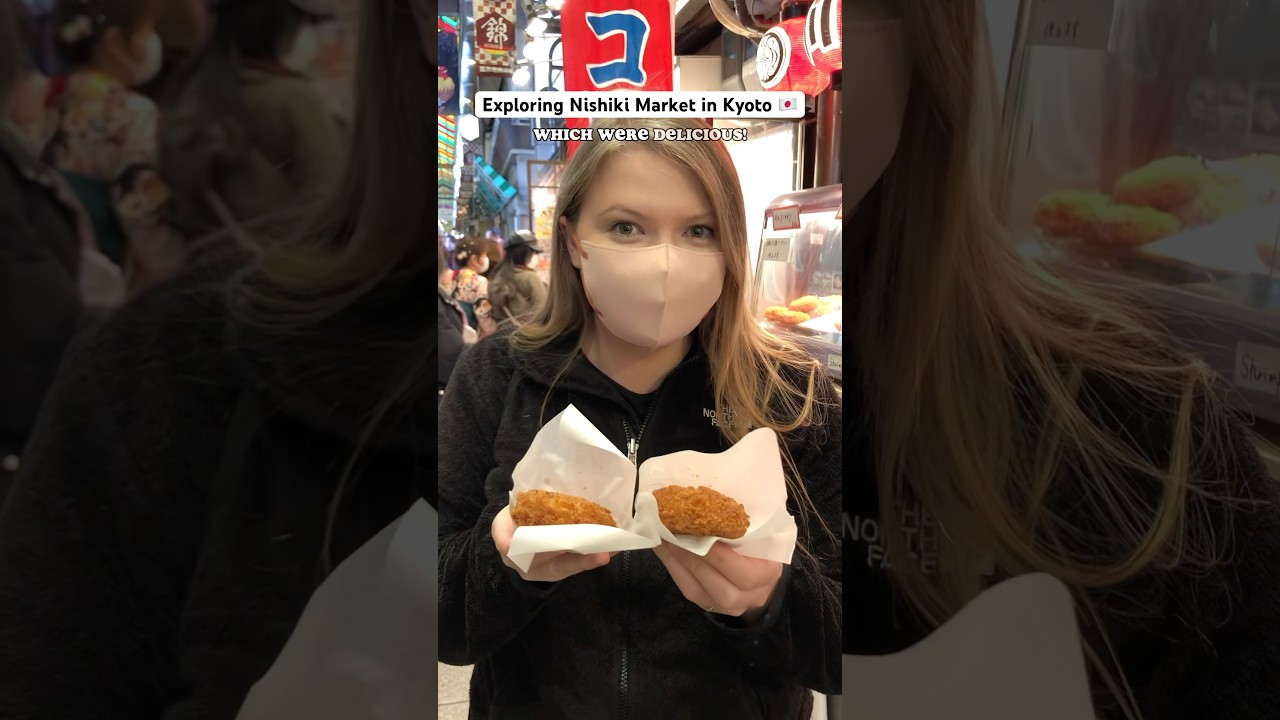 [Music] Nishiki Market is a narrow shopping street in Kyoto. Often referred to as Kyoto’s kitchen, this fresh food market is five blocks long in line with over 100 restaurants and shops. It’s a fun place to walk around, shop, and try some good food. We ended up getting the beef and potato croquettes, which were delicious. Take time to explore the market and enjoy all it has to offer. There are so many foods to try and shops to check out. Follow for more adventures around Japan. [Music]