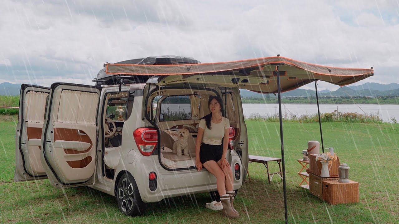 ⛈️갑작스런 폭우 속 레이와 투명어닝텐트로 강가 앞 힐링 우중캠핑 | 사연을 그려드리는 그림여행🌻| 저속노화식단 |빗소리ASMR | 댓글이벤트