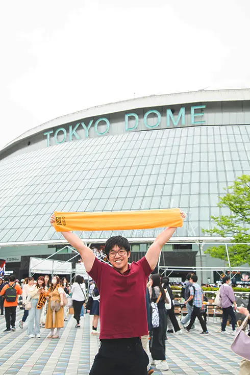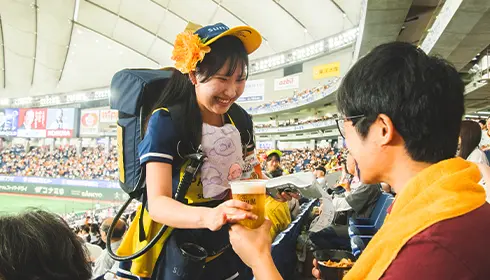 Inside, food stalls and shops line the concourse, selling meals, snacks, sweets, and team merch. Some meals have player portraits next to them—those are their personally curated menu items. While rare overseas, they’re common at Japanese baseball games, with some fans buying their favorite player’s meal as a form of support. If you’re not sure what to try, the boxed meal from the famous Japanese BBQ restaurant Jojoen is a Tokyo Dome classic. You’ll also find ones from other well-known Tokyo restaurants, so come hungry. Meanwhile, beer vendors—popularly known as “uriko” or beer girls—can be found darting around the stands, providing drinks straight from the tap—a sight unique to Japanese baseball games.
