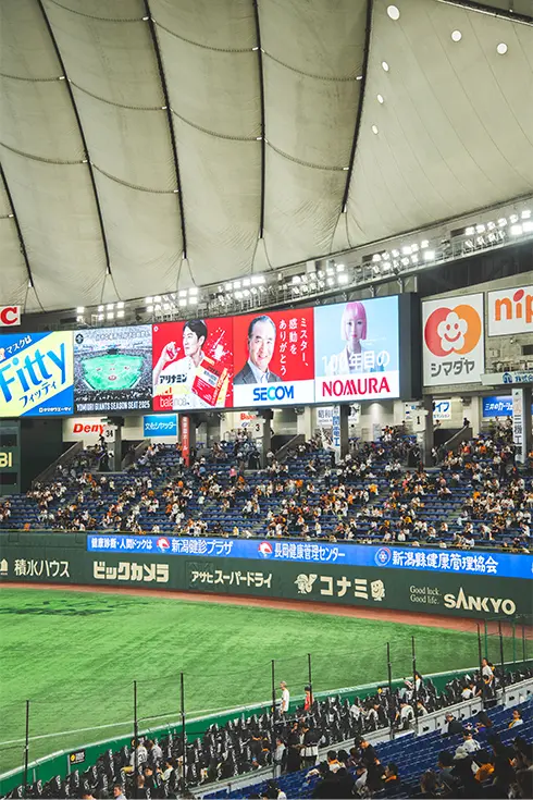 Another feature of Japanese baseball is its cheering styles, which reflect each team’s identity. Cheering sections lead chants and wave flags from the outfield stands, so be sure to get a seat there for more action. For a more game-oriented experience, infield seats offer a calmer atmosphere while still capturing the crowd’s energy. Whenever the Yomiuri Giants home team scores, fans swing orange towels over their heads while singing their “VIVA GIANTS” chant. The stadium’s lighting system also adds to the spectacle, flashing with each score, so grab a beer, cheer at the top of your lungs, and experience the thrill of Japanese baseball as the stadium comes alive.