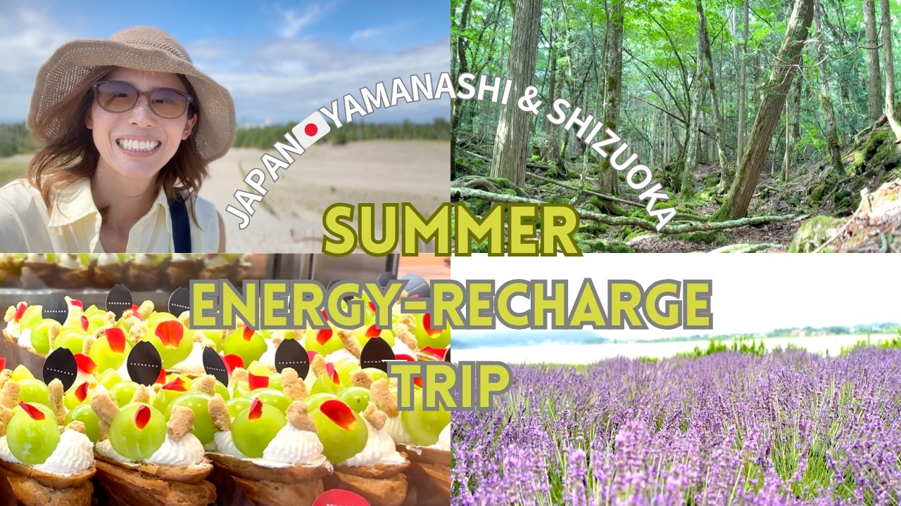 Mount Fuji varies greatly depending on the season and weather, but is generally higher at over 50% from November to February when there is less dust and water vapor in the air. On the other hand, when we went, it was around June to July when humidity is high, so the probability of seeing Mount Fuji is low at around 20%. I found a website for a company that predicts the probability of seeing Mount Fuji at each date and time. Details will be in the description, so don’t forget to subscribe and click the like button! Lake Kawaguchi is also famous as a scenic spot from which you can see Mt. Fuji. This hotel offers Mount Fuji water and rice crackers, allowing you to enjoy being close to Mount Fuji. After filling our stomachs, we set off for Lake Kawaguchi. Oishi Park, located north of Lake Kawaguchi, is cool even in mid-July, so the lavender fields are in full bloom. Not only are there small boats and pleasure boats on Lake Kawaguchi, but you can also go smelt fishing from October 1st to April 15th. A fishing license is required, which can be purchased from vending machines or at nearby convenience stores. There are several souvenir shops around the lake, so we went to try some lavender-flavored soft serve ice cream. I love the smell of lavender, so I can pretty much imagine what it tastes like, but… does it taste as good as I imagined? Wow! Contrary to its appearance, it has a rich milky taste with a subtle lavender scent. It’s easy to eat. Oishi Park is filled with flowers that bloom in all seasons, so you can take some beautiful photos on days when you can see Mt. Fuji. Very big size! There is a sea of trees nearby, so we recharged ourselves with natural energy before heading to our next destination. Approximately 1,200 years ago, lava flowed from a major eruption of Mount Fuji, covering a vast area, and approximately 3,000 hectares of virgin forest was formed on top of it. The ground is covered with lots of fallen leaves and is very soft and fluffy. Next, we head to Shizuoka Prefecture. It’s a three and a half hour drive from the sea of trees, and about two hours by Shinkansen from Tokyo Station. Shizuoka Prefecture is famous for its tea, but it’s also famous for a sweet called Eel Pie. Shunkado, the makers of Eel Pie, has created the Sweets Bank Shop, a unique store where household items are displayed at 13 times their normal size. Here you can have a healthy lunch, where you can choose your salad portion, side dish, and main course. I ordered a large salad and fish spring rolls. The fish was delicious. This is green giggles. I didn’t know any other sweets besides Shunkado’s Eel Pie, so I was surprised by the wide variety of Western and Japanese sweets they had. In the sweets section, you can see the process of making sweets. The sweets made with peaches and Shine Muscat grapes from Yamanashi Prefecture look delicious. Yamanashi Prefecture is known as the kingdom of fruits, and during our trip we came across fields of grapes, peaches, and plums, which are the number one producers in the country. There are also sweets made with Shizuoka matcha. I chose the peach dessert. The hand towels come in interesting Eel Pie packaging. The fresh sourness and sweetness of the peach fills my mouth. This dessert features the natural flavor of Japanese peaches. Even the toilets and umbrella stands have been carefully designed, making this a space that is enjoyable down to the smallest detail. When I step outside Sweets Bank, I feel as small as an ant. The local bank next door also has an oversized fountain pen for visitors to enjoy. ” Welcome. How can I help you? ” Finally, cool off at Nakatajima Sand Dunes, one of Japan’s three largest sand dunes. It’s a 10-minute drive from Sweets Bank, or an hour by train. This place is also used as a filming location for movies and TV dramas. In the summer, it is a place rich in nature where loggerhead turtles come ashore to lay their eggs. When strong winds blow, beautiful wind patterns like these appear. The sand dunes stretch approximately 0.6 km from north to south and 4 km from east to west. The sea, which I haven’t been to in years, feels open and refreshing. Please enjoy the energetic sounds of the ocean for a while. You can wash your feet in this park near the sand dunes. It’s a unique park with 16 stone statues. ” My friend. ” There is a sumo ring, so if you’re lucky you can watch sumo practice. How was today’s tour? I hope you have lots of good fortune today. See you again soon!