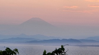 Mount Fuji is seen from Enoshima Island. The writer says she had not expected to see the mountain but it was a welcome surprise as dusk came, and a fond memory from her time abroad.
