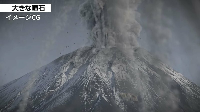 The video shows that following an eruption, beach sand-like ash as large as 2 millimeters in diameter would soon fall around Sagamihara, Kanagawa Prefecture, about 60 kilometers from the volcano, while a 20-centimeter-thick layer of ash would accumulate there about two days later.