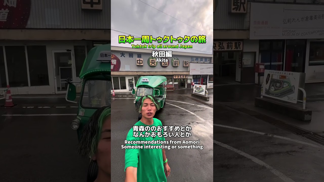 どうもです。皆さんこんにちは。ということでですね、日本 1 週クトゥクの旅も秋田編が終わりまして青森編に入りました。秋田で出会ってくれた皆さんありがとうございました。で、これからね、青森ということで、あの、青森のおすすめとかなんかおもろい人とか、え、行って欲しい飲食店とか紹介して欲しい飲食店とか色々あの、教えてくれたら嬉しいなと思っております。 で、えっと、リアルタイムの発信は、ま、ストーリーとか、え、 TikTok ライブで発信してるんで、よかったらチェックしてください。以上。とえです。