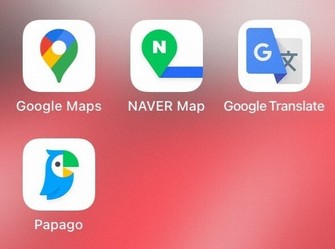 The icons of four smartphone apps “Google Maps,” “Naver Map,” “Google Translate” and “Papago.” (Mainichi)