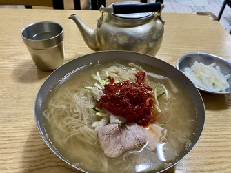 Because of the extreme heat, I ate cold noodles many times in South Korea, and I encountered the best one just before leaving: the Busan-born “milmyeon,” a type of “naengmyeon” (cold noodles) made from wheat instead of buckwheat, at the Naeho Naengmyeon restaurant just outside the downtown district. Originally founded in 1919 in present-day North Korea and relocated to Busan after the breakout of the Korean War, the eatery is said to be the first to have started serving the cold wheat noodles amid a shortage of the buckwheat produced in the northern Korean Peninsula. The super thin noodles were somewhat chewier than Japanese “somen” (also a slender wheat noodle) and the umami-laced beef bone broth hit the perfect refreshing balance, not too thin or too rich. Though the area is accessible by local buses, the services are few and far between. It was the moment I re-realized the merit of motorcycle trips.
