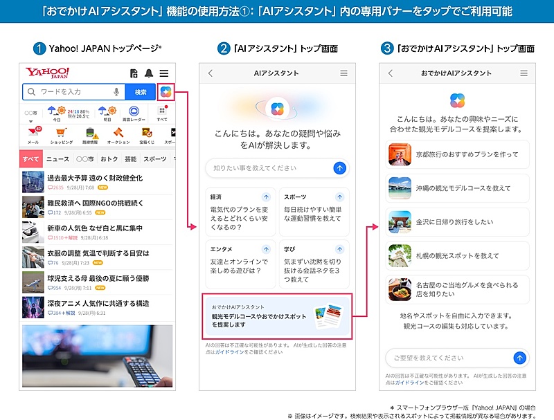 Yahoo! Search has begun offering a AI assistant function for a user to create travel routes in conversation with generative AI.