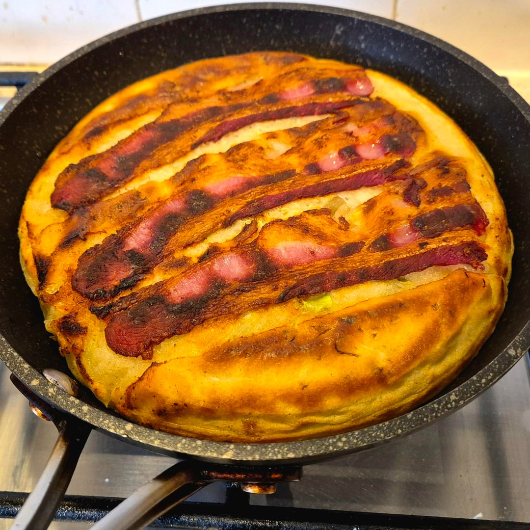 I couldn't be bothered to go out and get pork belly, so I used bacon and slightly burned it, the mandolin made the cabbage too fine (I was hoping to get a little crunch every few mouthfuls, alas), and I probably could have used a little bit more cabbage too.