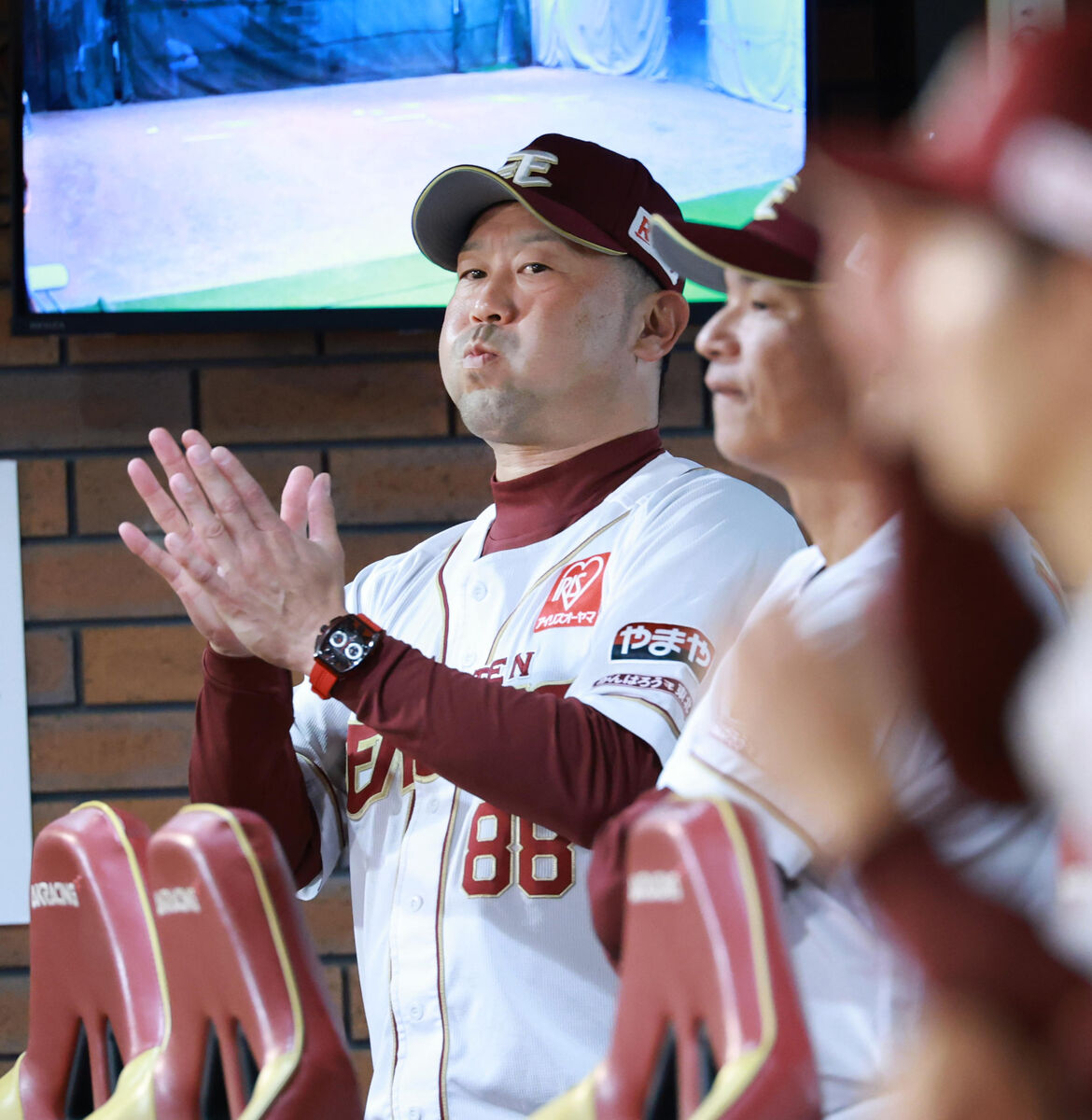 9回、戦況を見つめる楽天の三木監督(カメラ・宮崎 亮太)