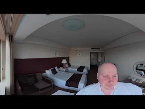Okay, let’s play in a room tour. This is 360° video. So, set image quality to the maximum allowed by YouTube and rotate your device to take a look around. This is a place for your dresses. This is a mini bar on the right. shower. We toilet. So as you can see the glory times of that hotel. In the past there is some wear and tear and at some point there was several famous actress visiting this hotel and we are in the room with a view. So a little bit in a Japanese style to make this in the center of the view. So you will always know that there is conditioning. Yeah. But the view itself is very great. And for you guys who watch anime, there is like anime school right down below. I mean school like an anime with a soccer field and swimming pool and this design you know three fours. So we are in the city of Nagasaki. Uh famous city not very great story but yeah we have what we have. On the right side there will be a Nagasaki bridge. This is a Nagasaki harbor in front of us. So let’s imagine then you that you sitting here in the chair. This is will be your position. And let me change you. you kind of you’ll be see looking at let’s say eastern part of Nagasaki with a hill and if you’ll be sitting above this I don’t know table