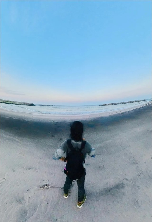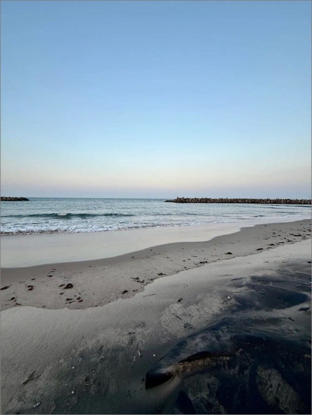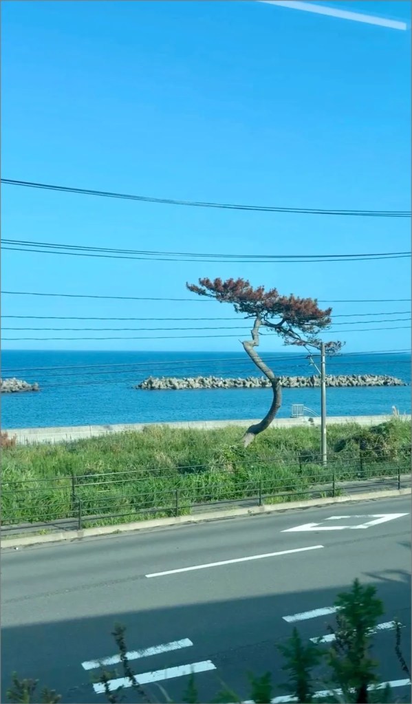 Since Fukushima is on the eastern half of the northern part of Japan’s main island of Honshu, the sun doesn’t set into the sea, so while he’d gotten some great sunset shots on the way here, his pics of the ocean were very blue.