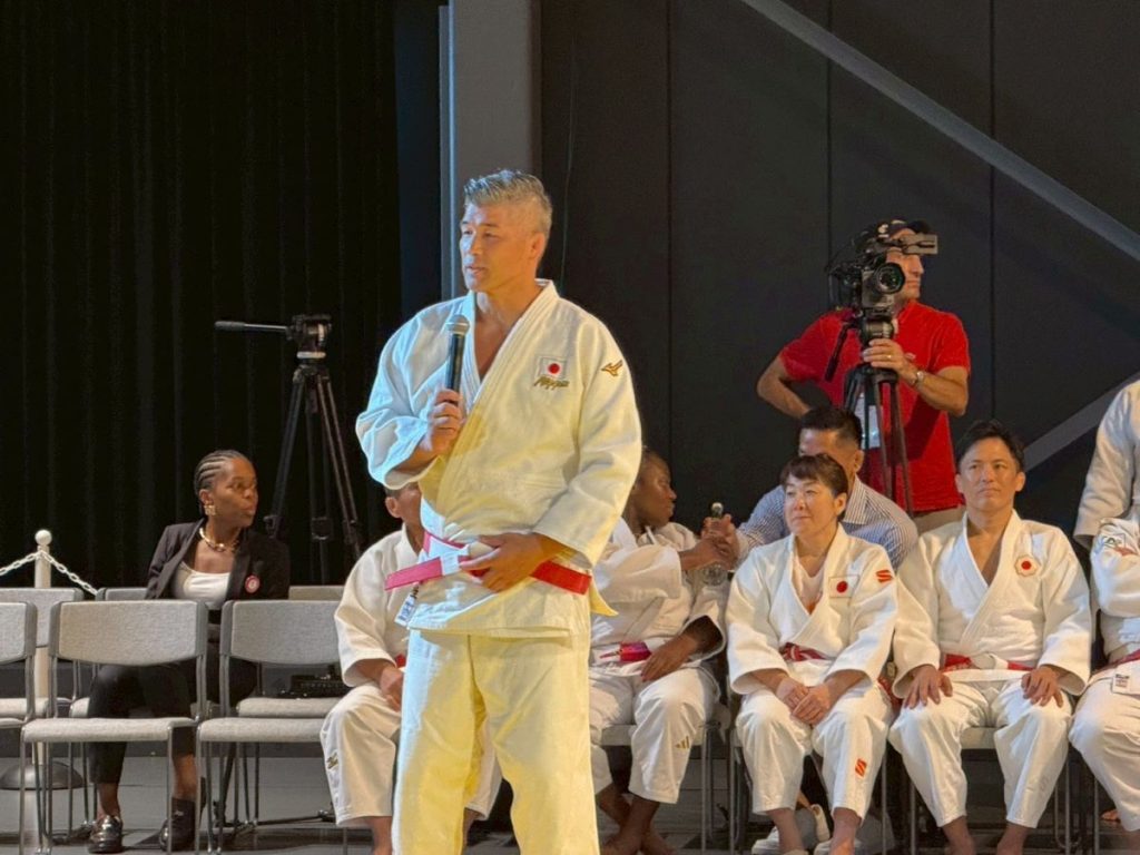 The lineup of athletes was truly extraordinary. Japan brought three legendary champions: Shinji Hosokawa (gold medalist, men’s 60-kg division, 1984), Tadahiro Nomura (gold medalist, men’s 60 kg, 1996, 2000, 2004), and Ryoko Tani (gold medalist, women’s 48 kg, 2000, 2004). France brought two national heroes of its own: Teddy Riner (gold medalist, men’s over-100 kg, 2012, 2016, 2024) and Clarisse Agbegnenou (gold medalist, women’s 63 kg, 2021).